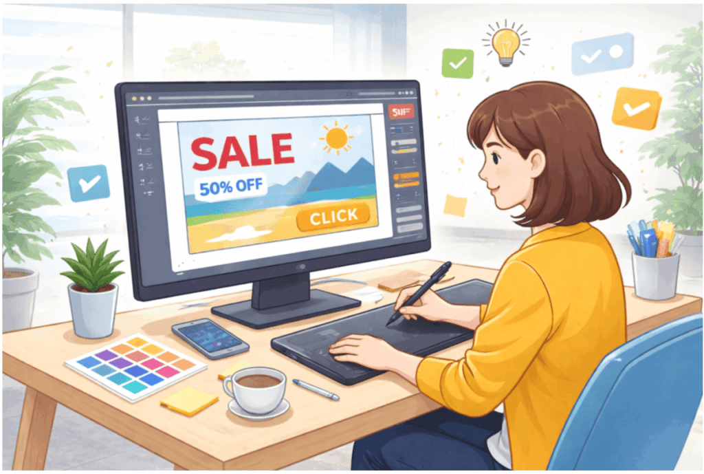 バナー広告制作の目的は、目立つデザインを作ることではなく、ユーザーの行動を後押しすることです。