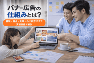 バナー広告は、認知拡大から成果獲得まで幅広く活用できる広告手法です。特に「バナー広告 収益」という観点では、継続的な改善が可能な点が大きなメリットといえます。