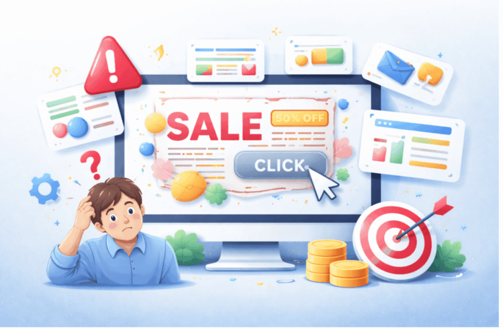 誘導バナーを配信しているのに、思うようにクリックされないケースは少なくありません。多くの場合、原因はデザインの細かな設計にあります。ここでは代表的な要因を整理します。