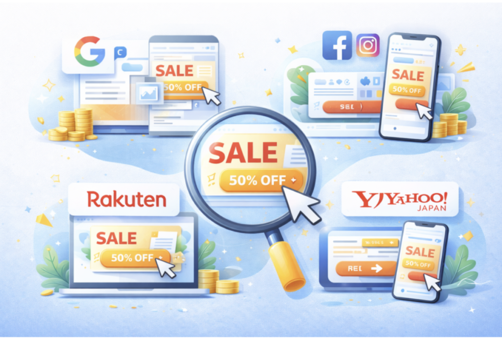 誘導バナーデザインは、どの媒体に配信するかによって設計が変わります。同じ内容でも、表示される場所やユーザーの状況が違えば、最適な構成も異なります。媒体ごとの特徴を理解して設計することが重要です。