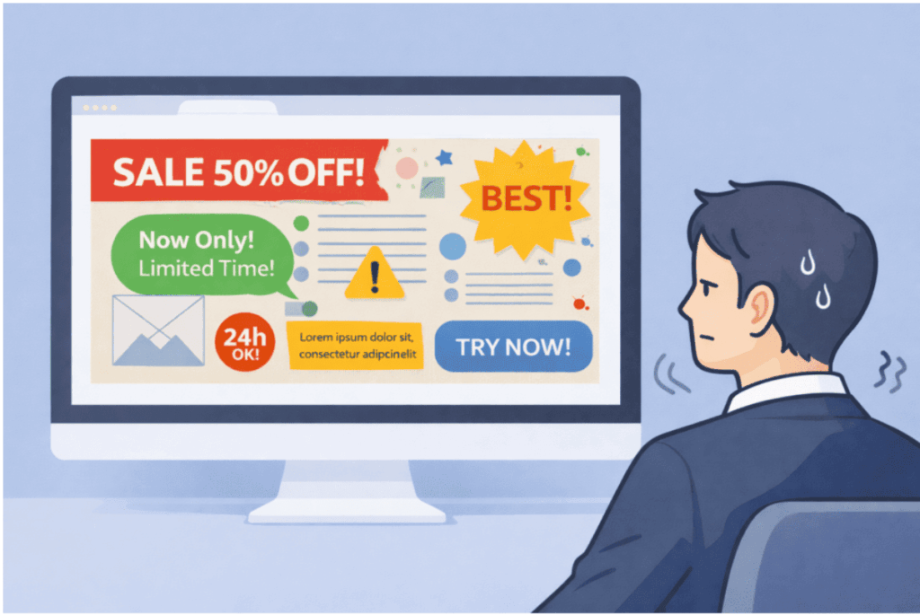 バナーはじっくり読まれるものではありません。多くの場合、数秒以内に判断されます。そのため、「一瞬で理解できる構造」にすることが重要です。