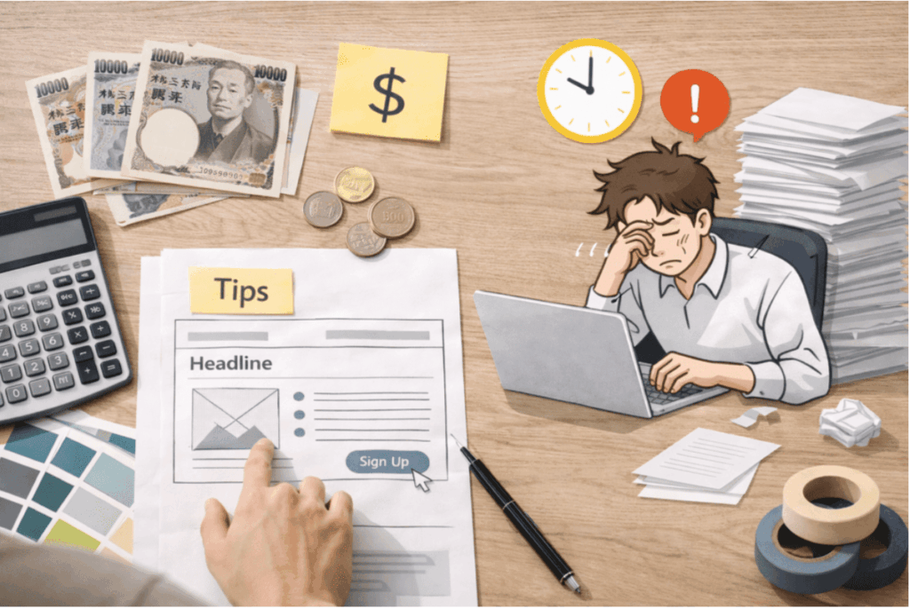 バナーレイアウトを改善しようと考えたとき、避けて通れないのが制作費用の問題です。単発の制作費だけでなく、修正やサイズ展開まで含めて考えることが重要です。ここでは、実際の費用感と運用の現実を整理します。