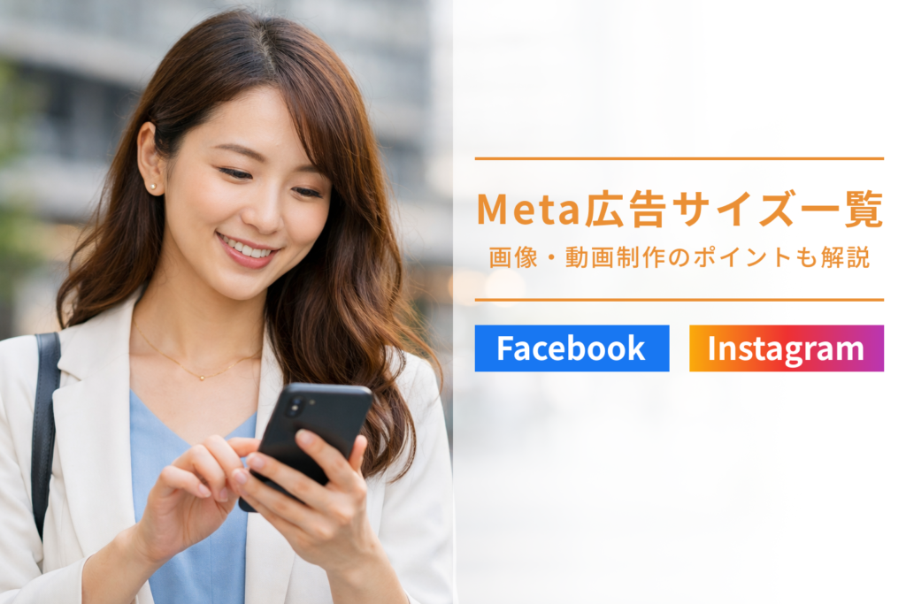 Meta広告とは、FacebookやInstagramなど、Meta社が提供するプラットフォーム上に配信される広告の総称です。画像バナーや動画を使って配信でき、フィード・ストーリーズ・リールといった複数の配信面に表示される点が特徴です。Meta広告では、クリエイティブのサイズ設計が広告の見え方や成果に直結します。