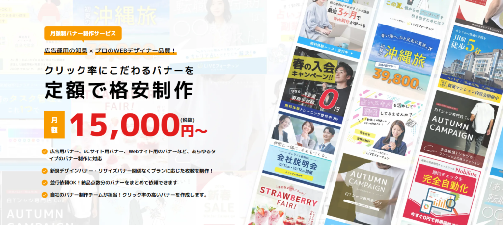企業担当者にとって重要なのは、コストだけでなく改善に集中できる環境を整えられるかという点です。定額制を活用することで、デザイン制作の制約によって広告改善が滞るリスクを減らすことができます。